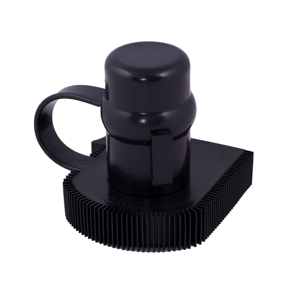 Rubber towball cover clips on to side of shin protector when trailer is connected.